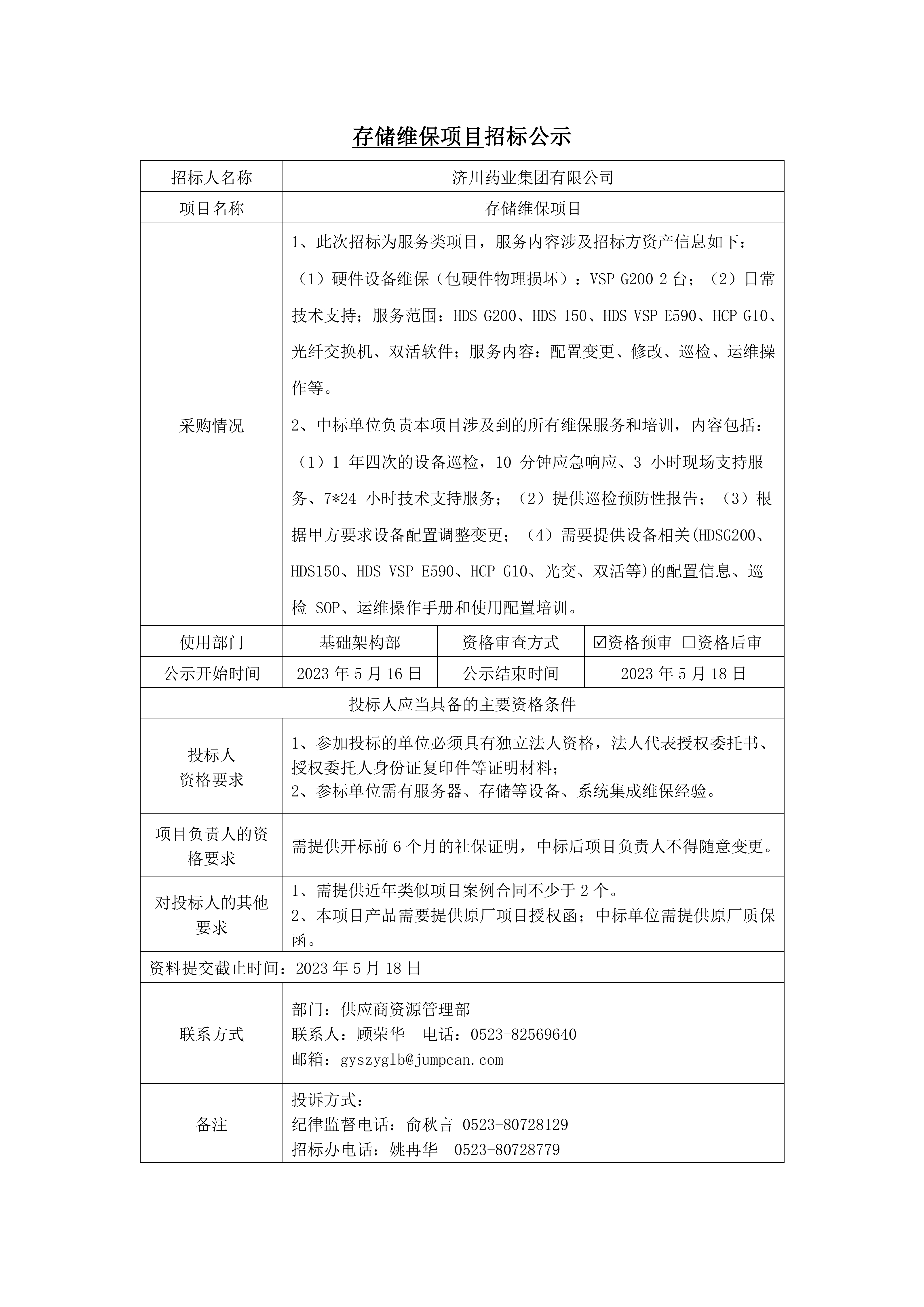 存储维保项目公示