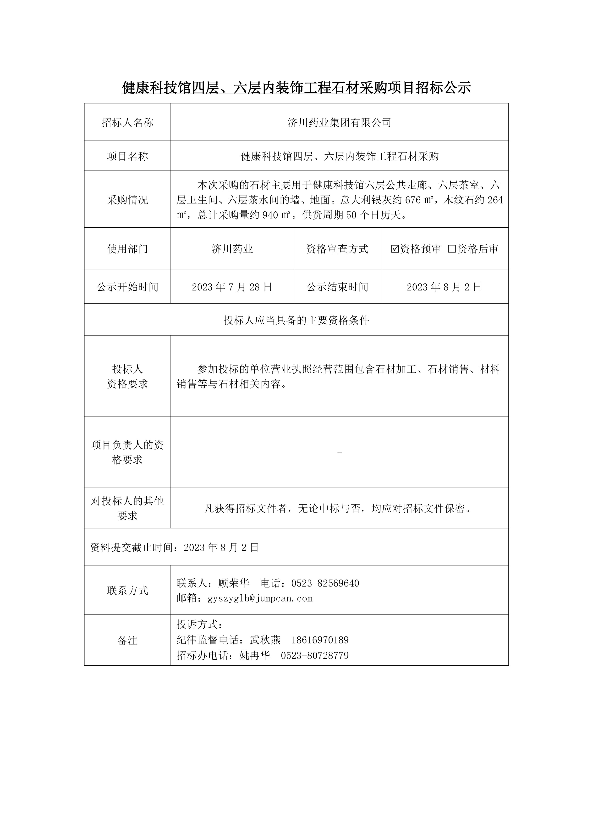 健康科技馆四、六层内装饰工程石材采购项目招标公示
