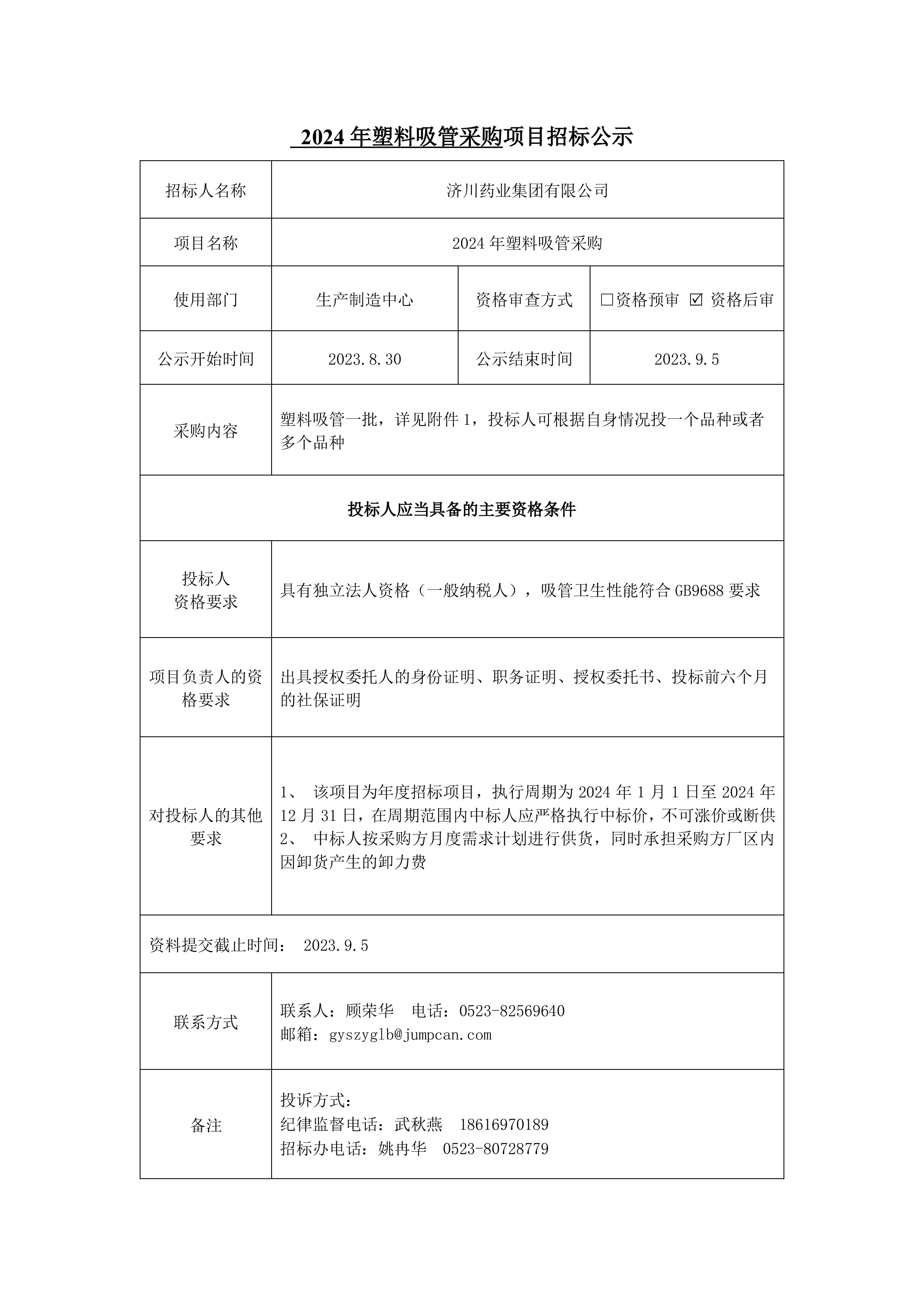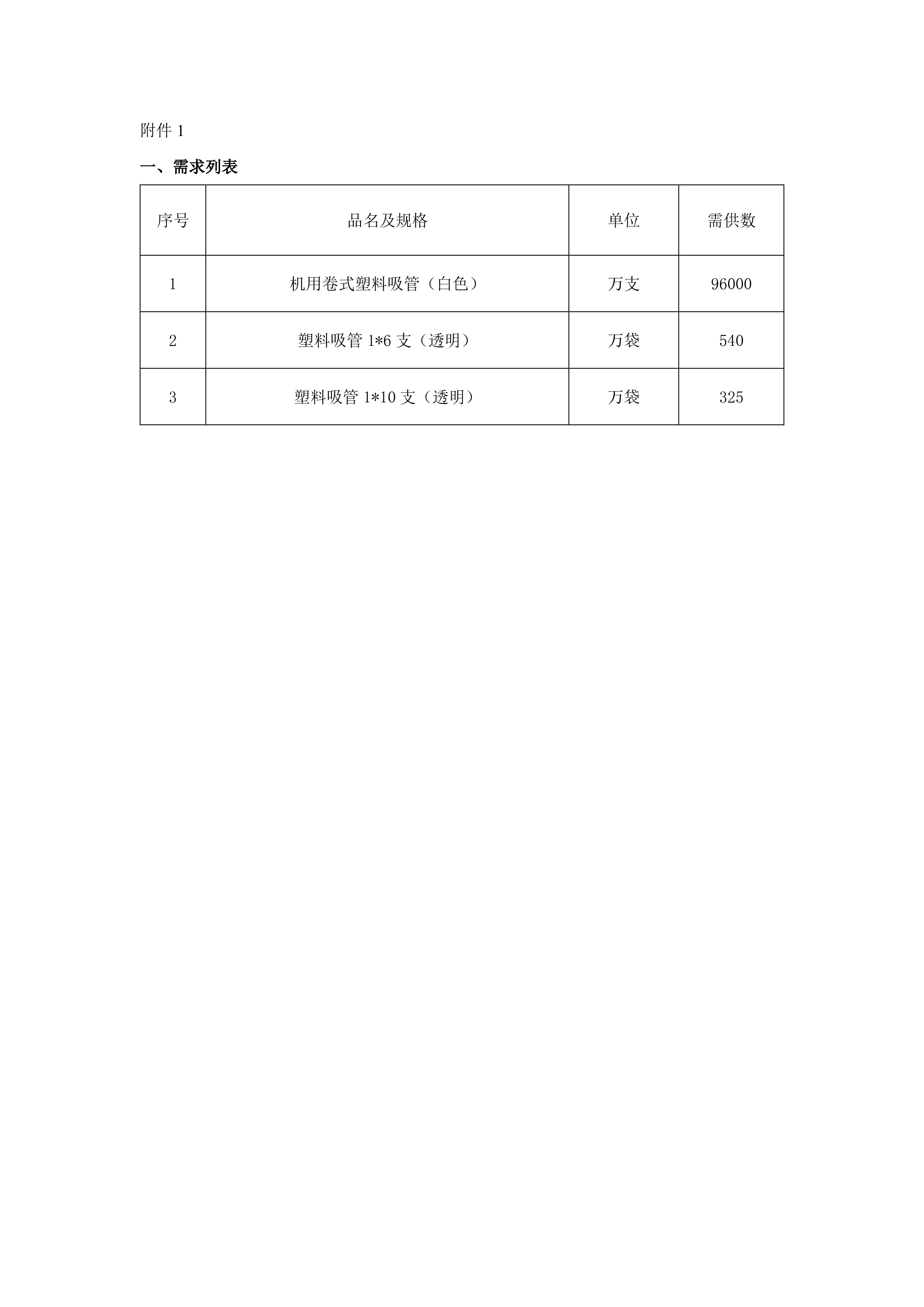 2024年塑料吸管采购项目招标公示