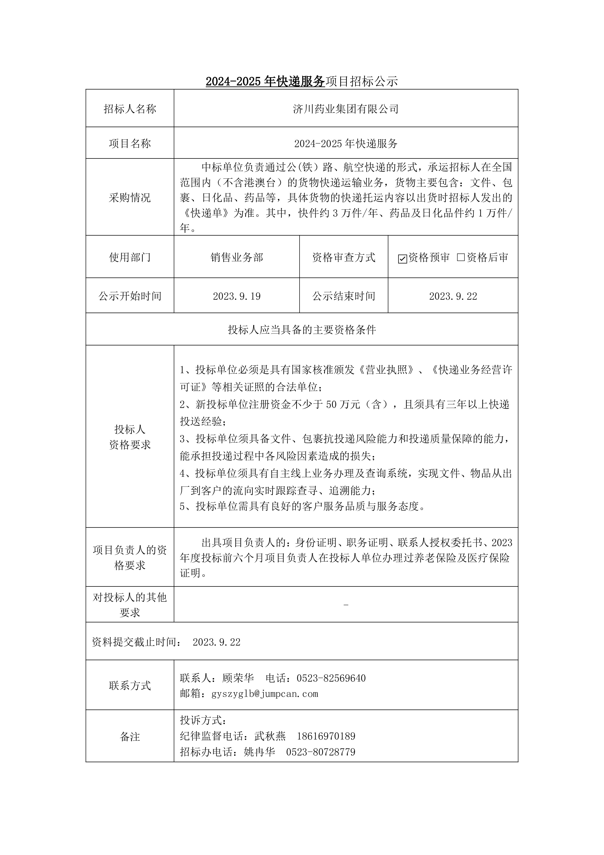 2024-2025年快递服务项目招标公示