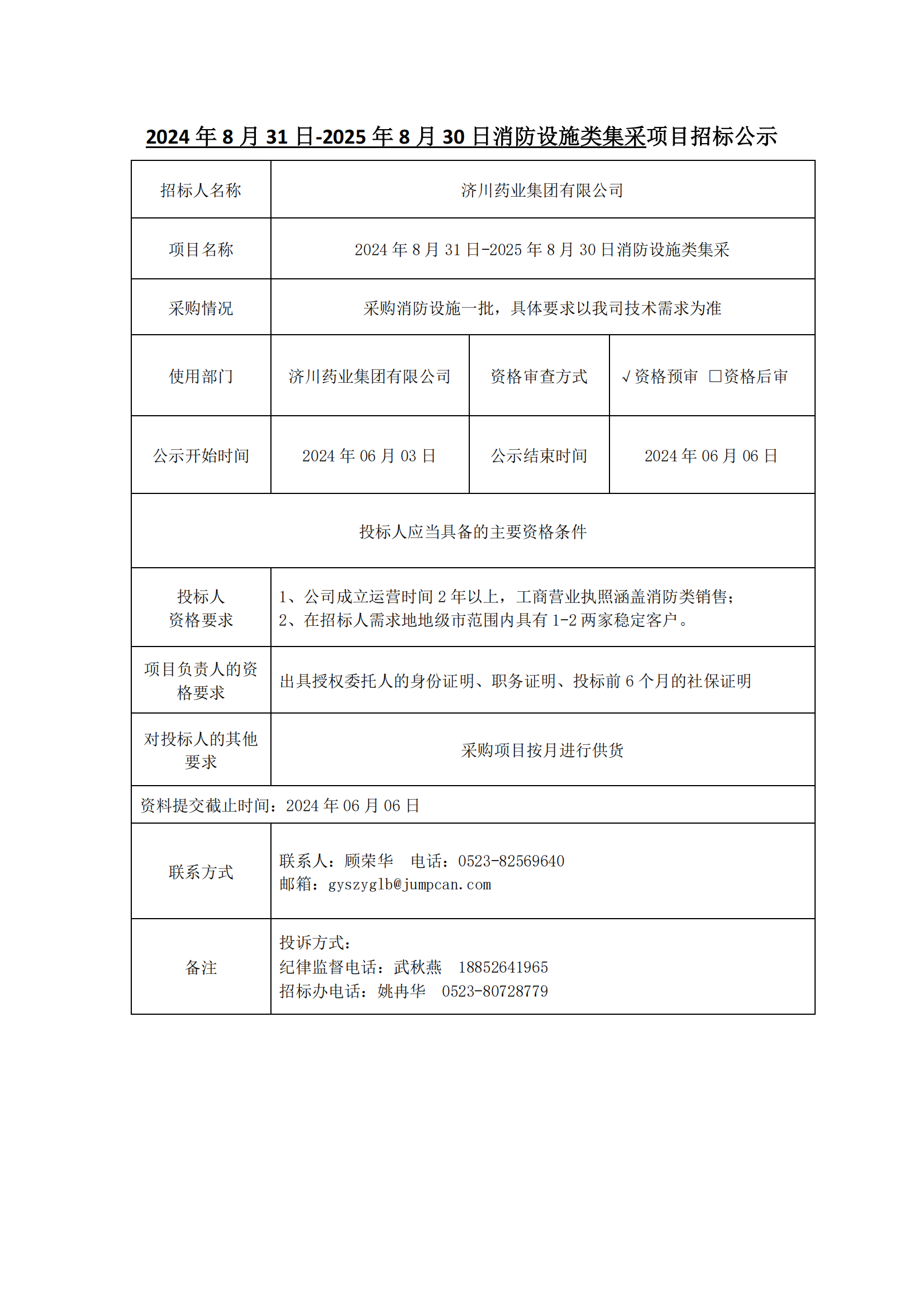 2024年8月31日-2025年8月30日消防设施类集采的公示