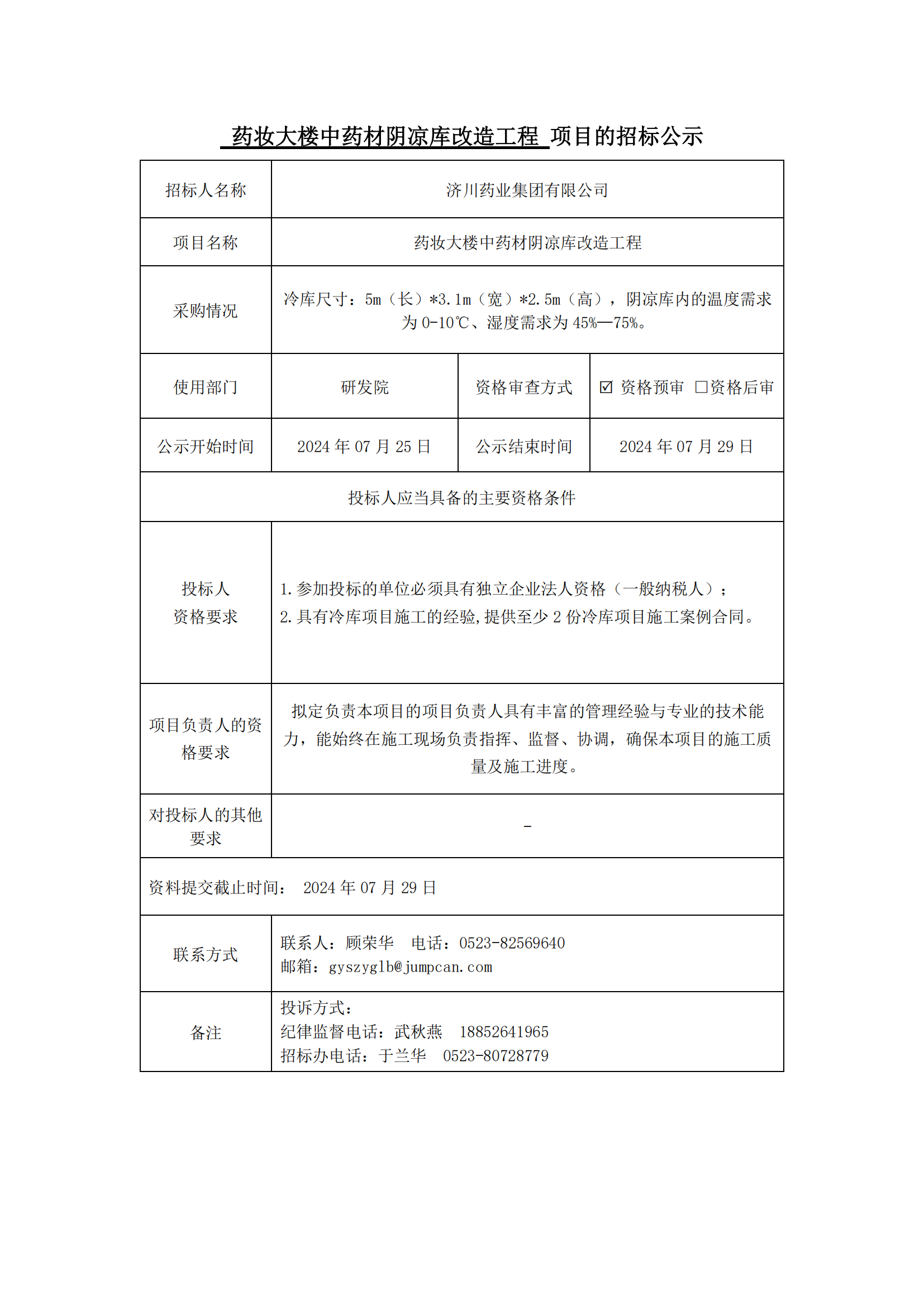 药妆大楼中药材阴凉库改造工程-项目招标公示