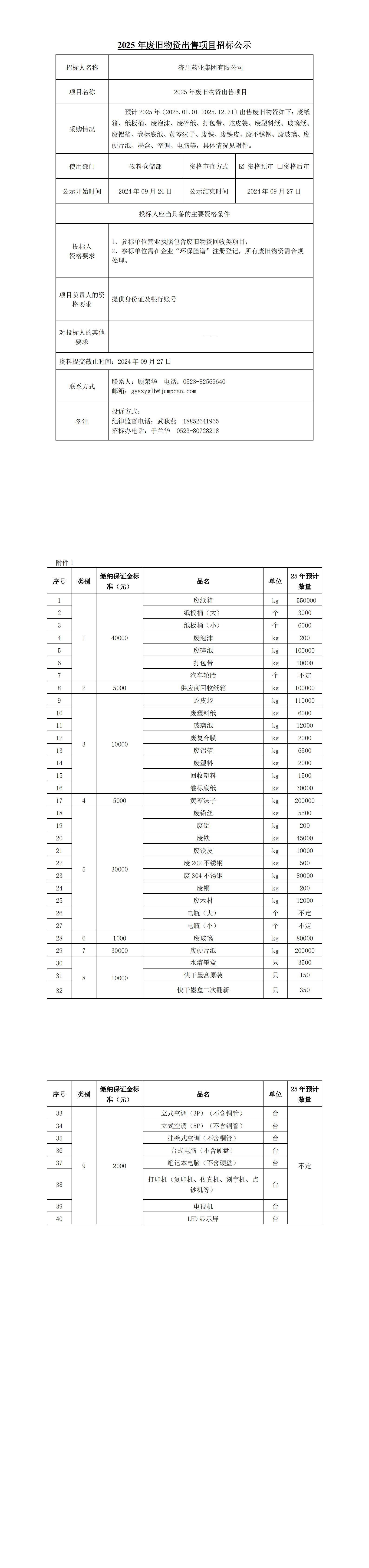 2025年废旧物资出售项目招标公示