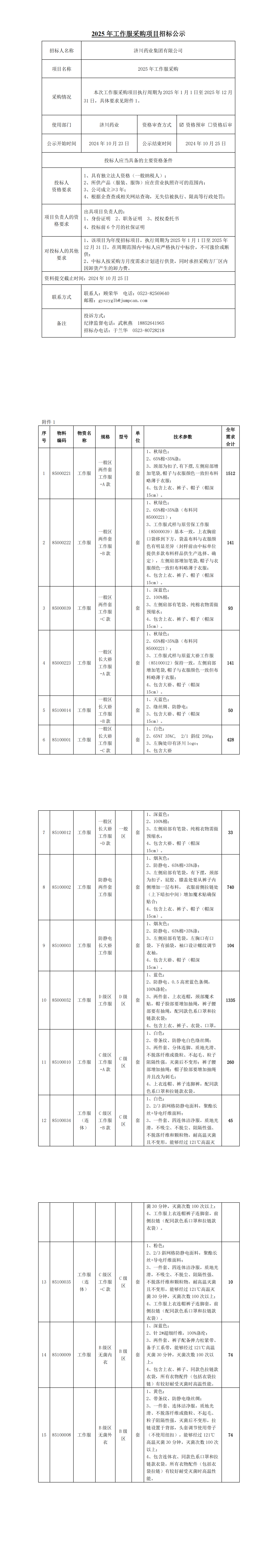 2025年工作服采购项目招标公示