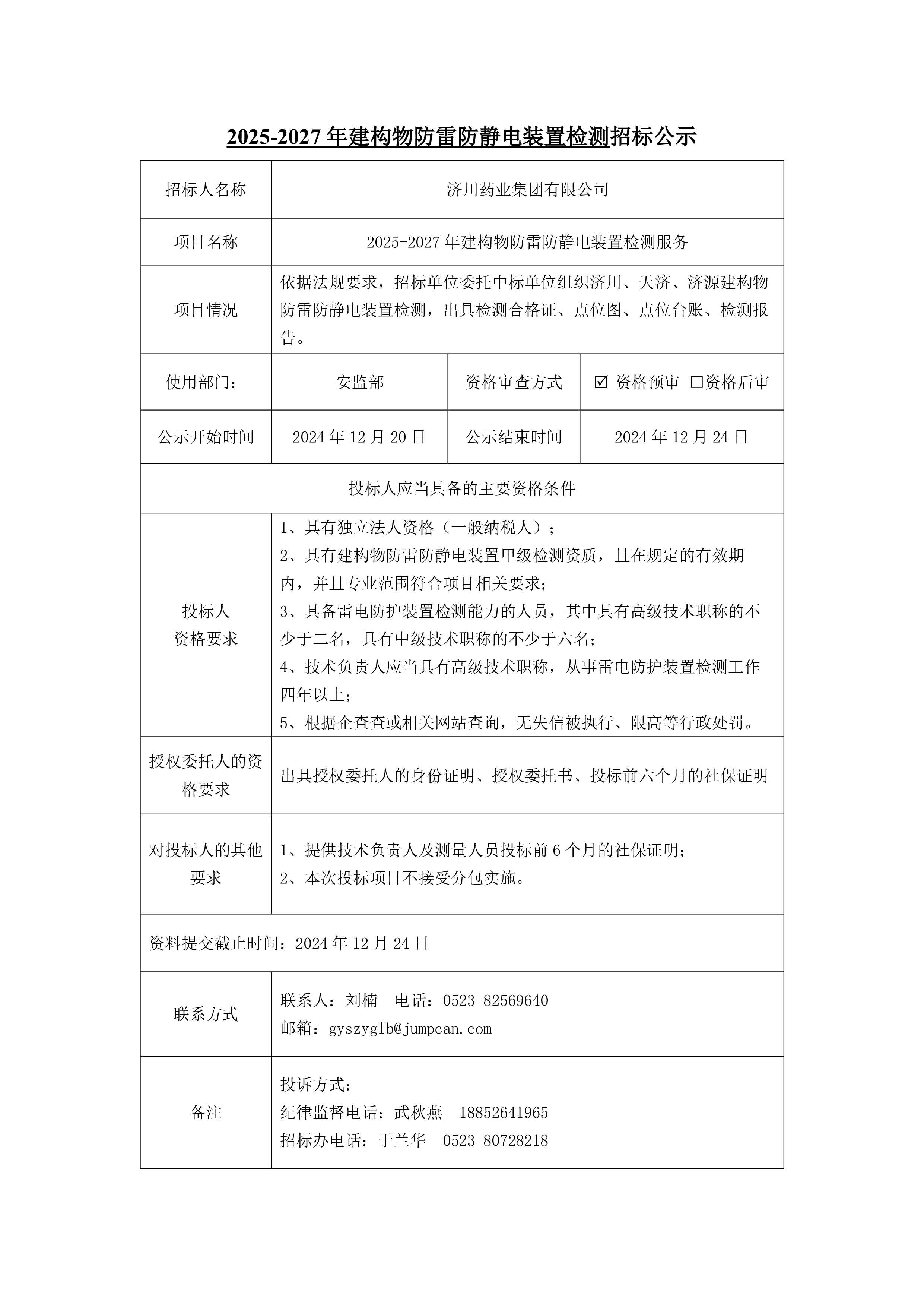 2025-2027防雷检测项目招标公示