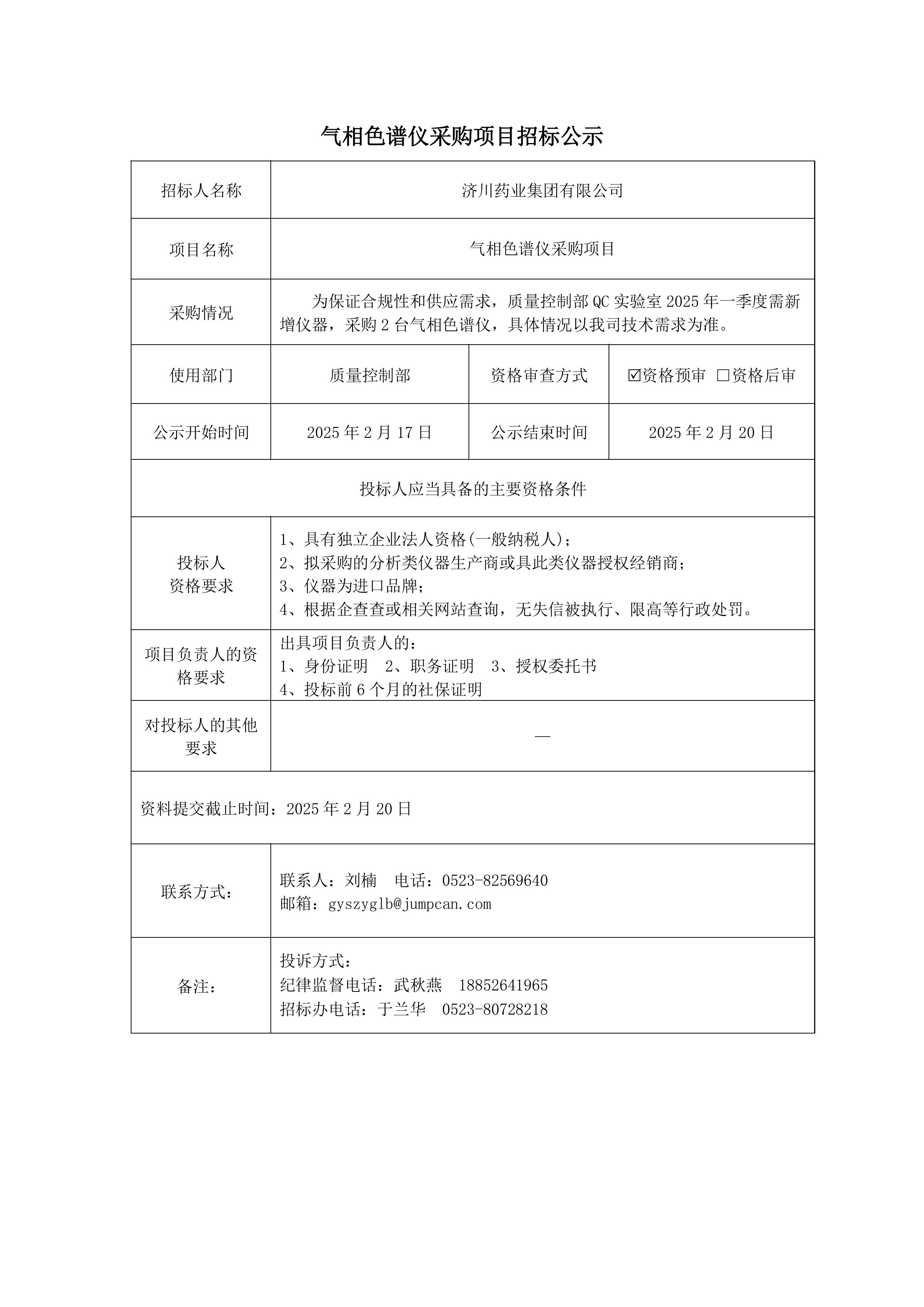 气相色谱仪采购项目招标公示