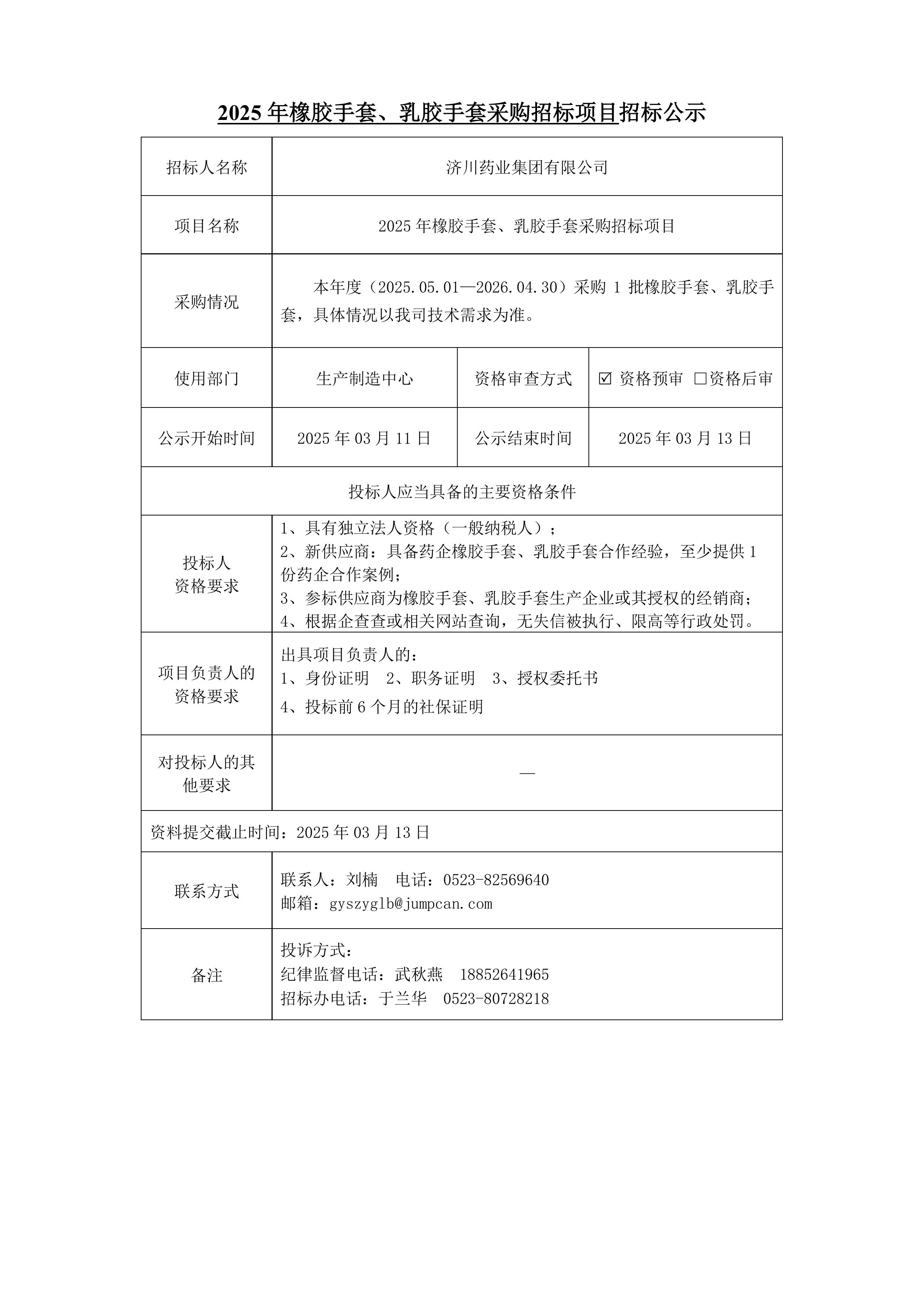 2025年橡胶手套、乳胶手套采购招标项目招标公示