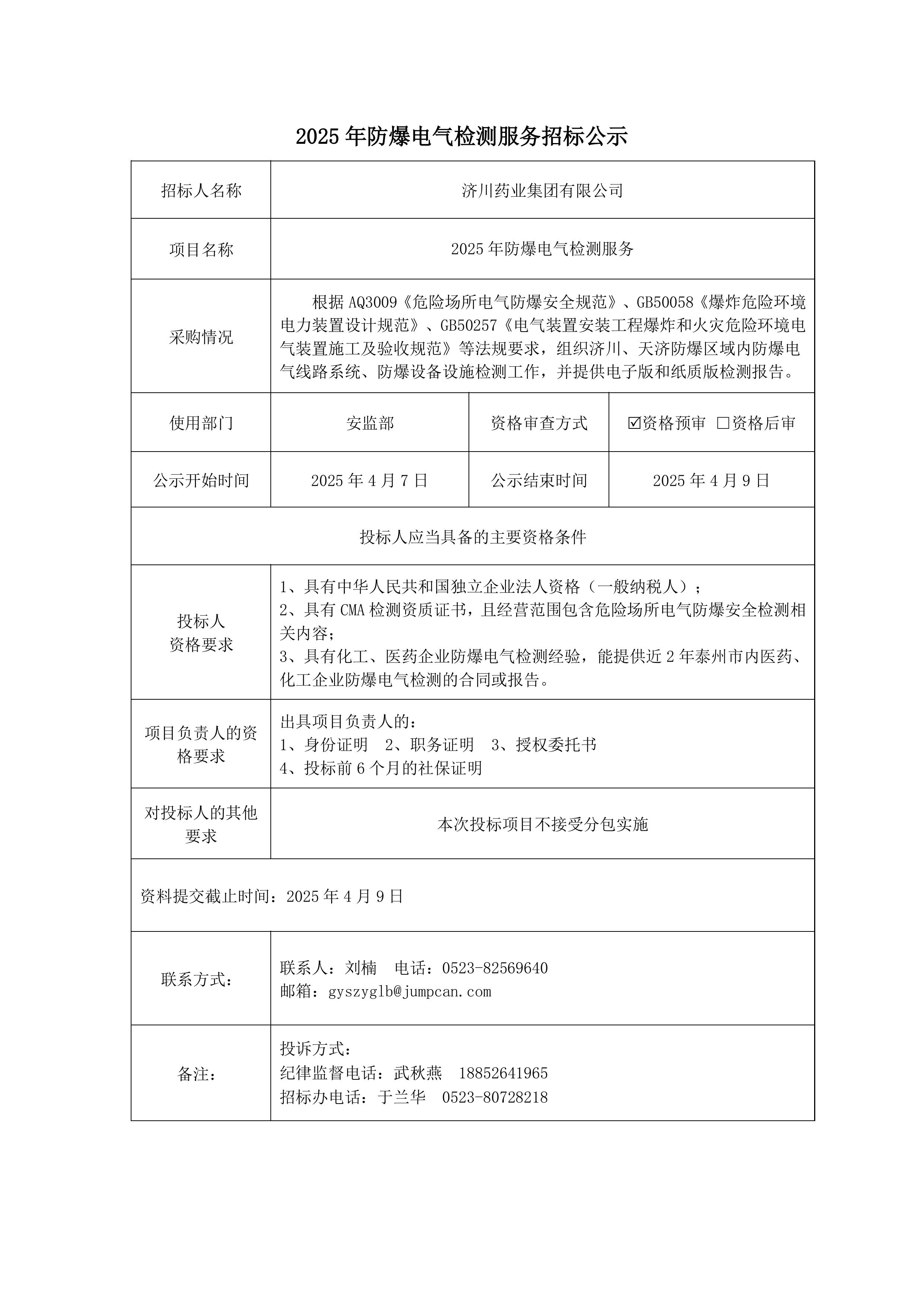 2025年防爆电气检测服务招标公示