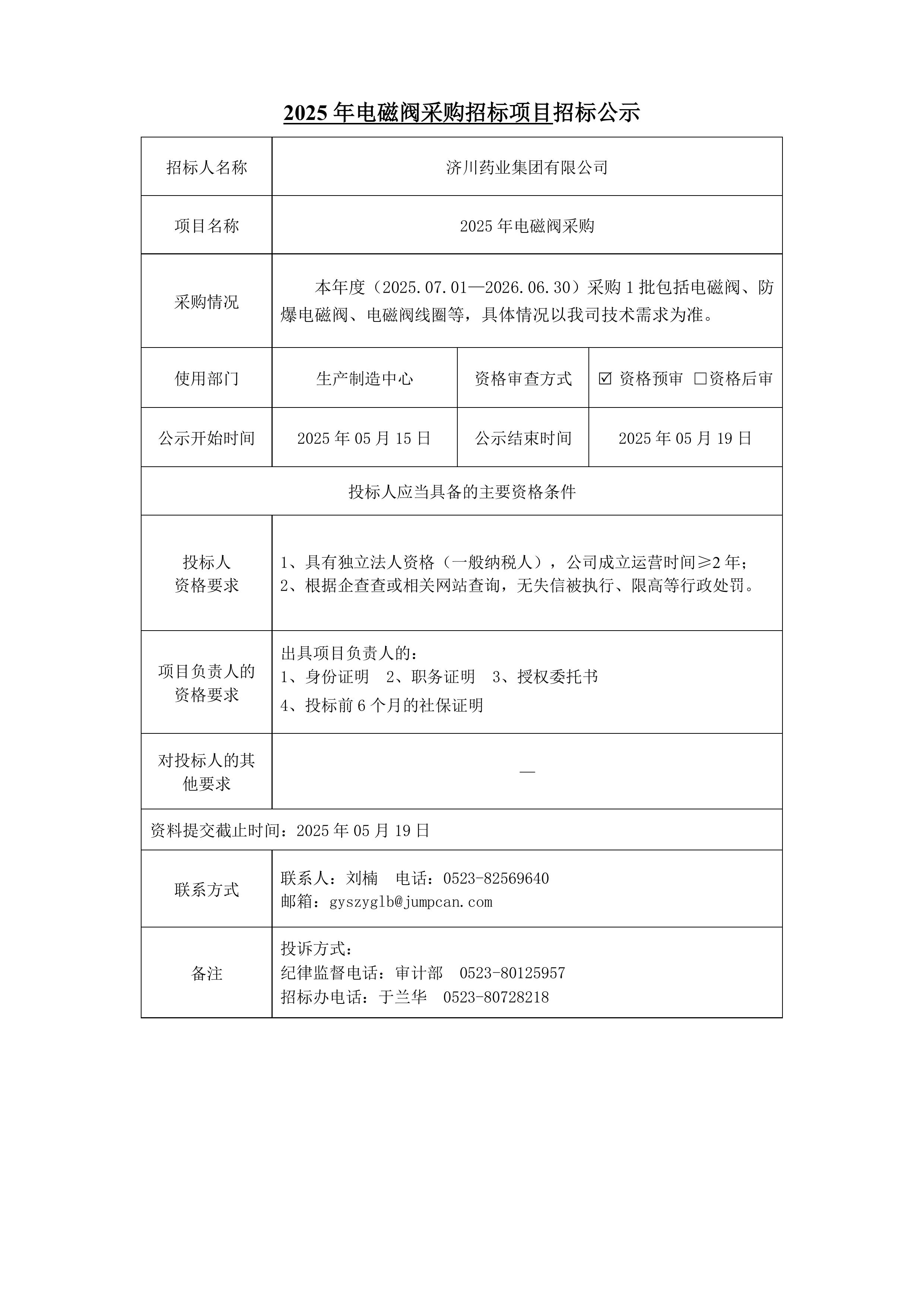 2025年电磁阀采购项目招标公示