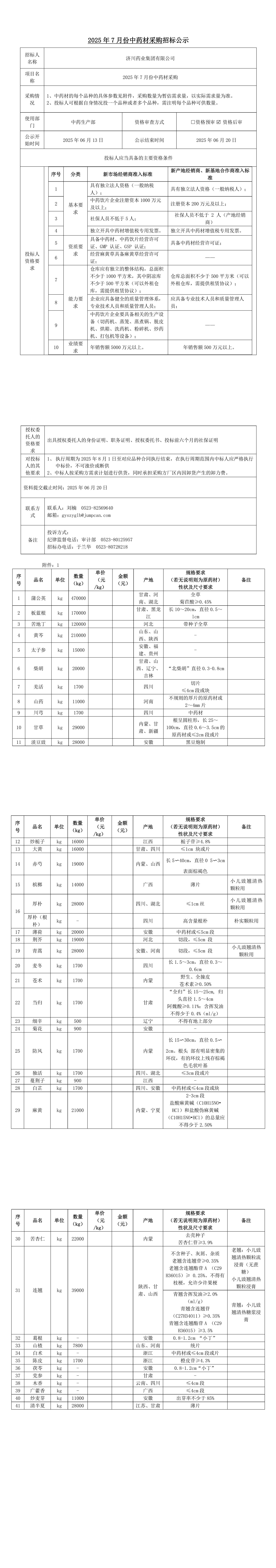 2025年7月份中药材采购招标公示