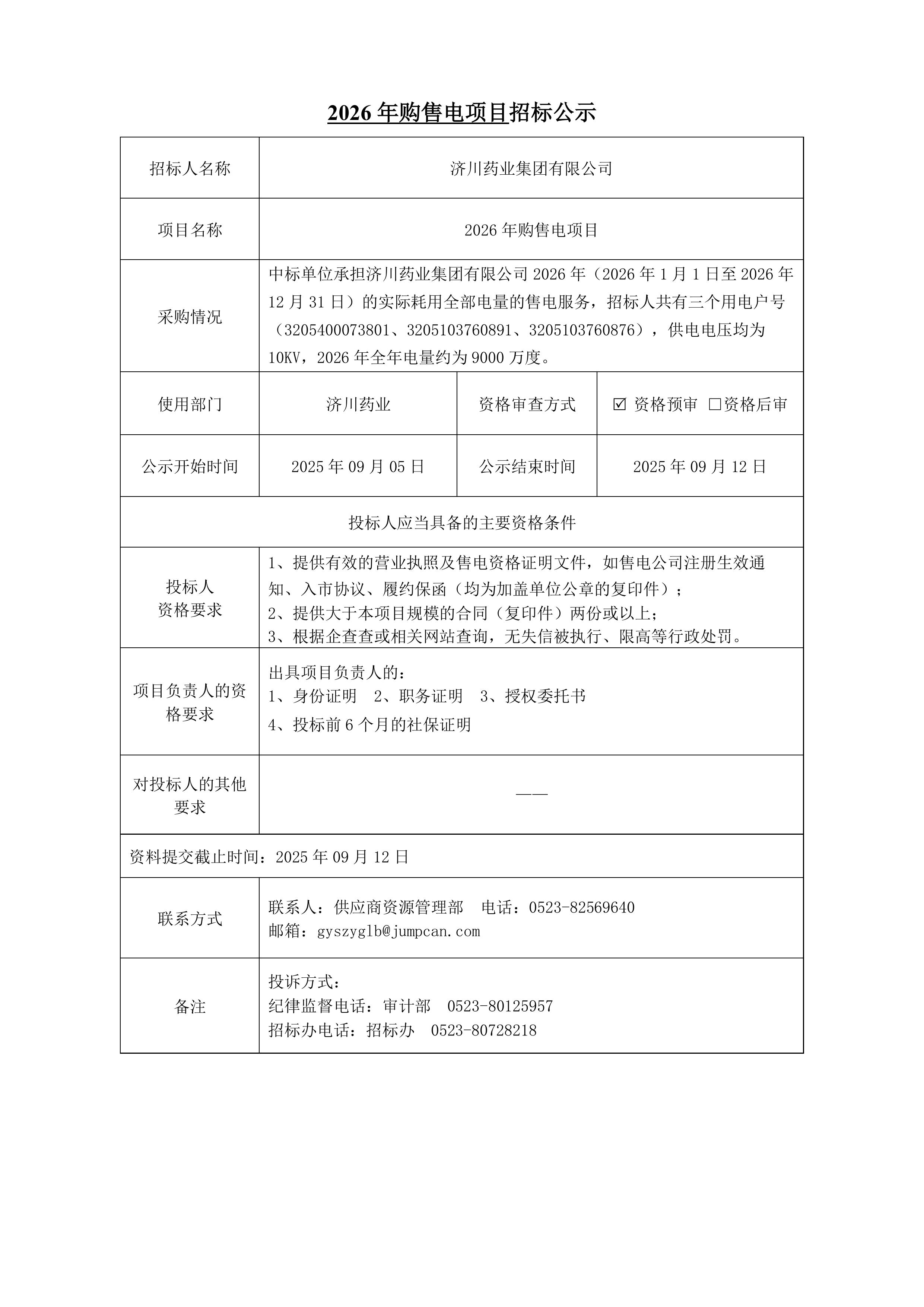 2026年购售电项目招标公示