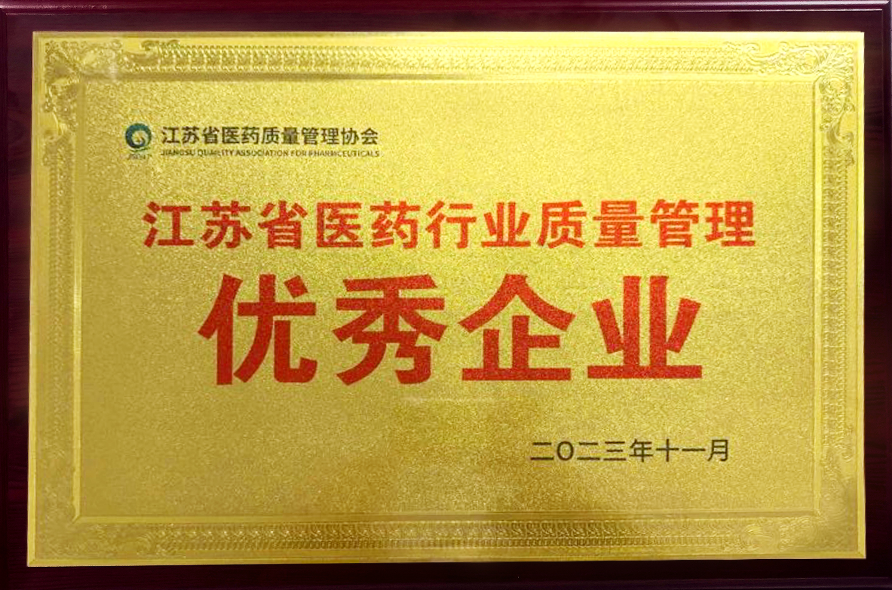 该奖项由江苏省医药质量管理协会主办,重点围绕质量管理组织建设、质量管理体系建设、风险防控措施及效果、药品法规实施情况、药品质量安全信用、质量管理创新与发展、质量管理控制效果等方面评审推选,产生获奖名单。