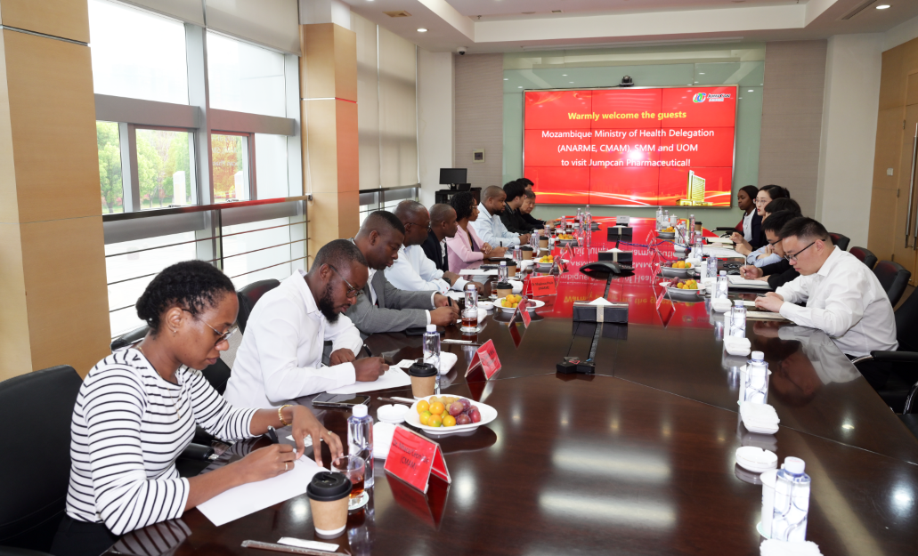 4月15日,在莫桑比克卫生部医保局采购司司长Ernesto Sambo、药监局药品、保健品和生物制品审评司司长Cassiano Carlos Joao带领下,来自莫桑比克国药总公司及南京联海科技的各位领导、友人莅临济川药业参观指导,济川药业集团国际业务部总监郭佩陪同参观。