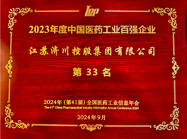 9月7日,2024年(第41届)全国医药工业信息年会暨“2023年度中国医药工业百强榜单发布会”在成都召开,大会期间发布了“2023年度中国医药工业百强榜”,江苏济川控股集团荣登榜单第33位,较去年上升2位。