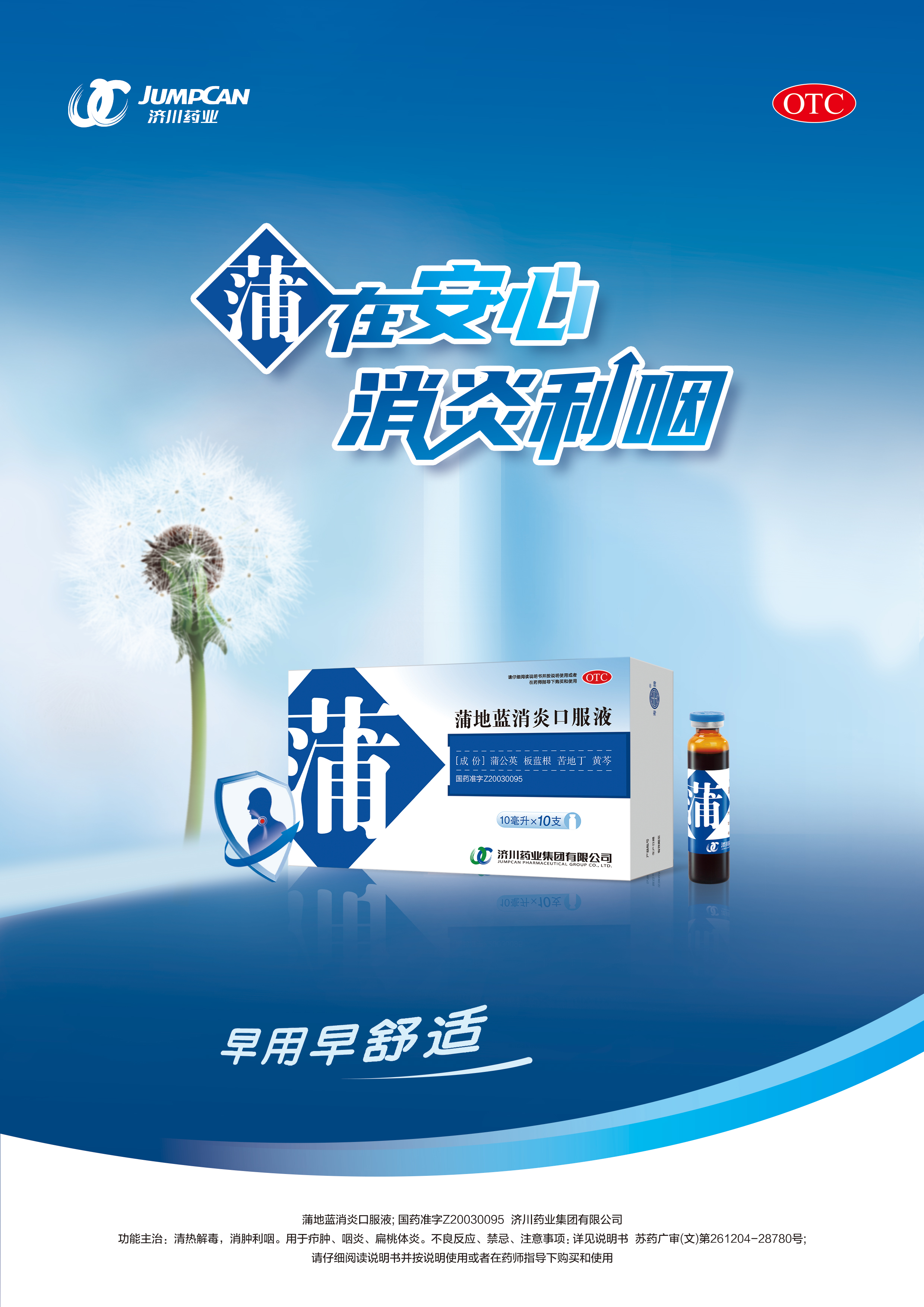 蒲地蓝消炎口服液是济川药业独家剂型产品,清热解毒、消肿利咽,儿童成人都能用,口服液剂型吸收好、有效成分高、起效快,更便于服用。蒲地蓝消炎口服液循证医学证据丰富,临床应用证据完善,受到医生、店员、消费者的广泛好评,连续多年位居中国城市实体药店、城市公立医院、线上电商平台清热解毒类中成药市场品牌前列。通过多年广泛应用验证,蒲地蓝消炎口服液已于去年获批为双跨药品(即处方药与非处方药双重身份),转为OTC后,患者无需医生处方就能在线下药店和线上电商平台购药,使患者购药用药更加便捷。